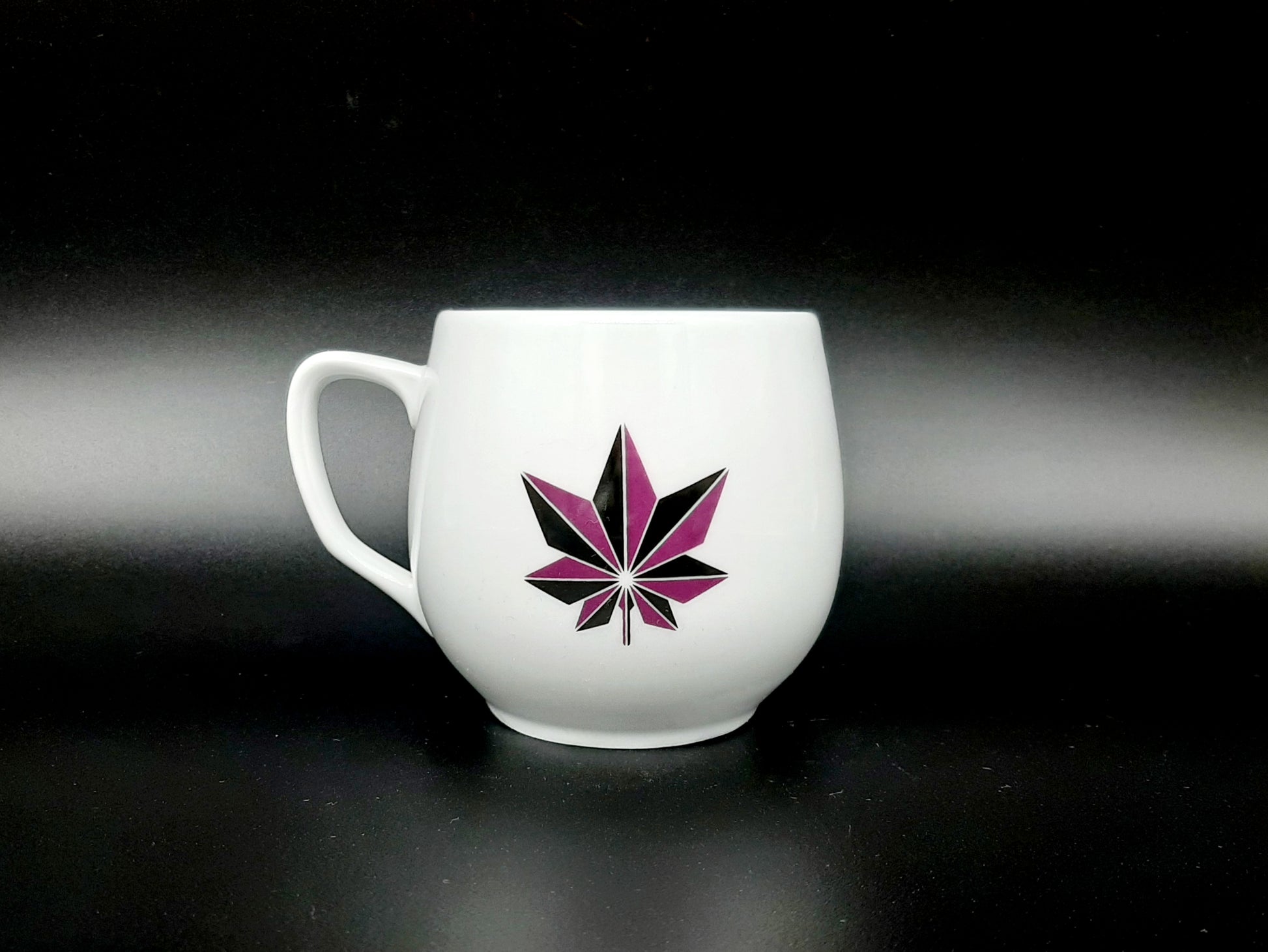 hrnek je ručně ozdoben obtisky na porcelán, které byly vypáleny v keramické peci na 820 °C