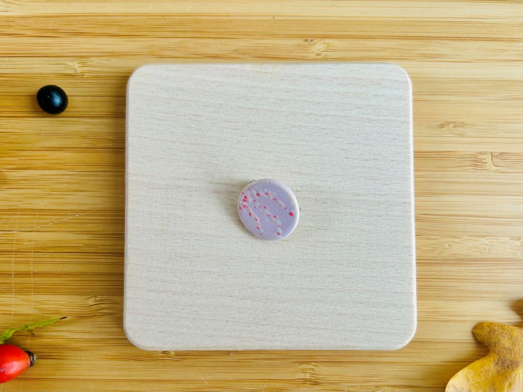 - Na keramickou brož jsem namalovala růžové kvítky rozkvetlé sakury