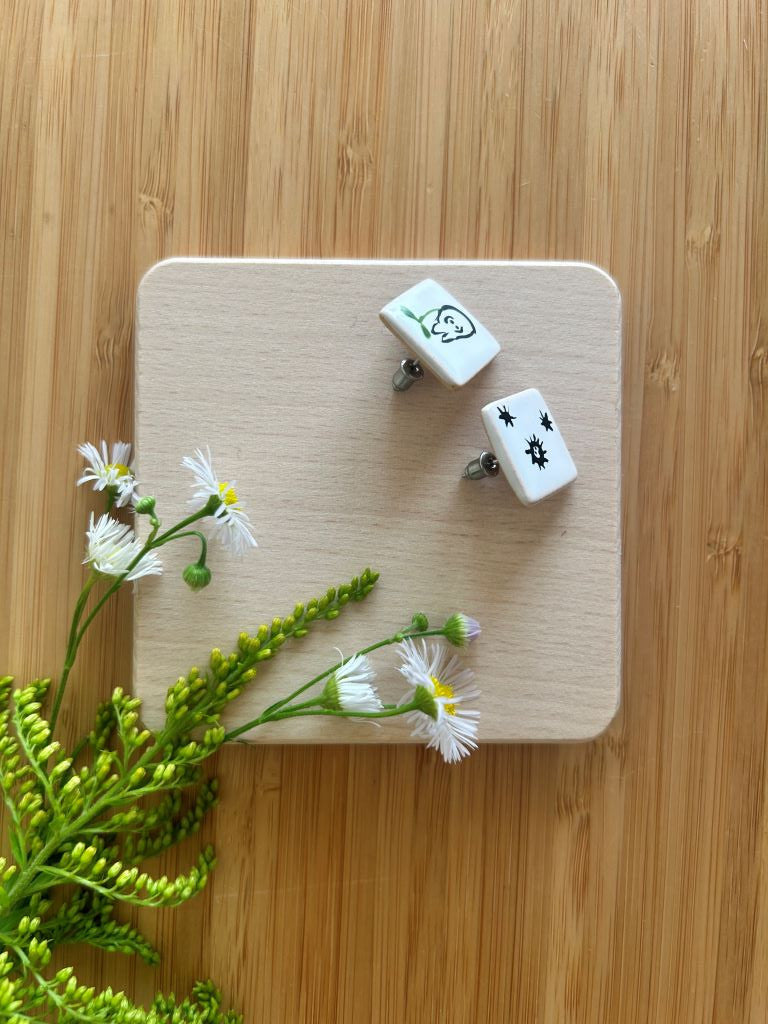 na náušnice jsem motiv ručně namalovala barvami na keramiku, které byly vypáleny na 160 °C