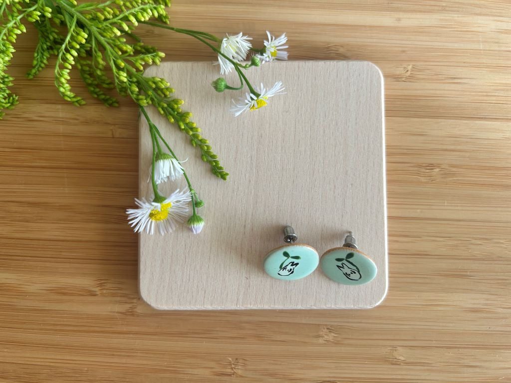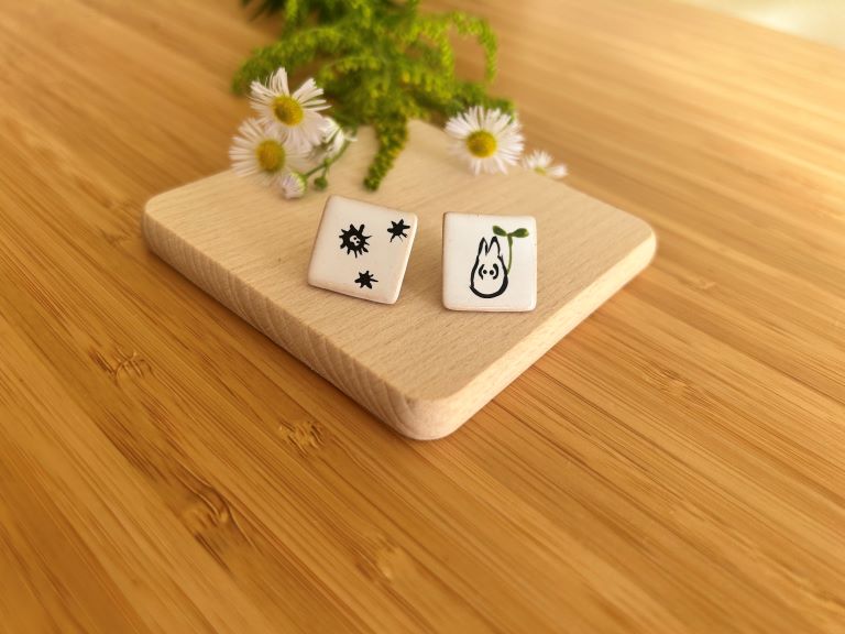- Na keramické náušnice jsem namalovala lesního ducha Totora z japonského animovaného filmu