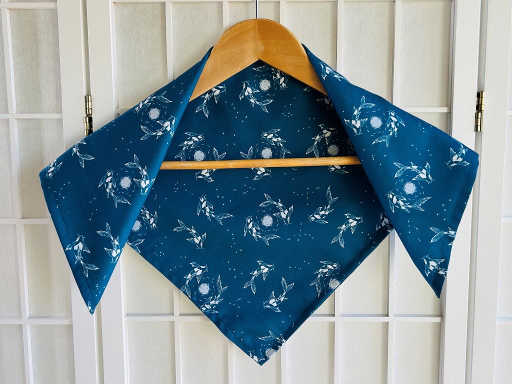 elegantní malý šáteček ozdobený reprodukcí mých akrylových maleb a perokreseb koi kapříků a odrazu měsíce na vodní hladině