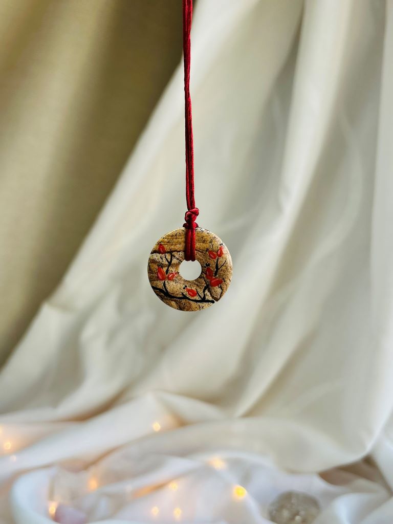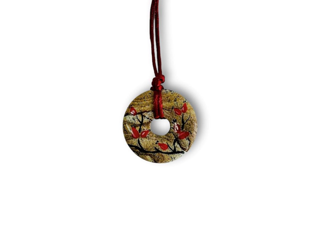 na náhrdelník jsem motiv ručně namalovala barvami na keramiku, které byly vypáleny na 160 °C