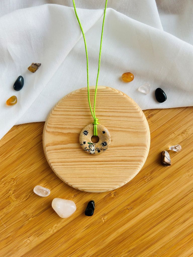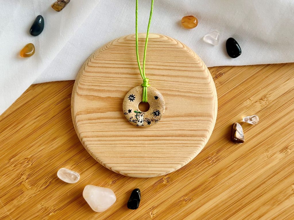 na náhrdelník jsem motiv ručně namalovala barvami na keramiku, které byly vypáleny na 160 °C