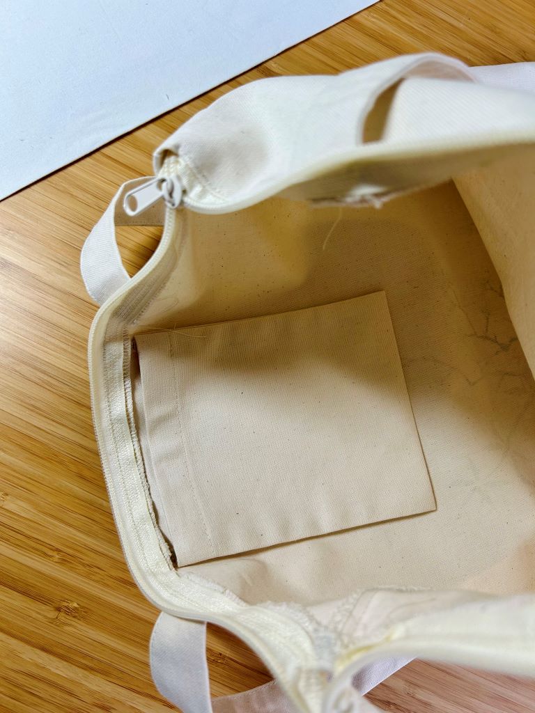- taška má zapínání za zip a uvnitř má malou kapsičku na drobnosti