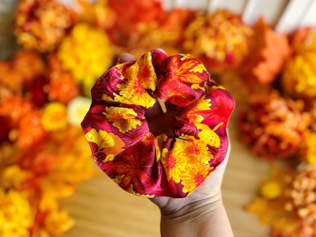Scrunchies látková gumička s nádechem podzimního parku v Japonsku