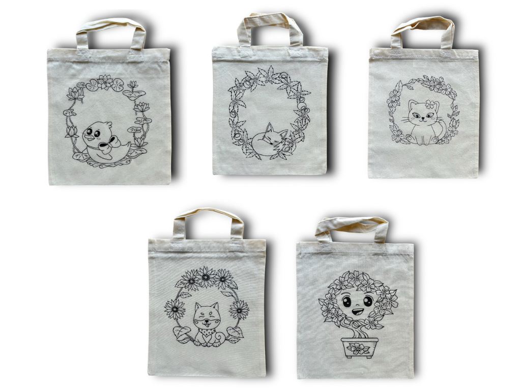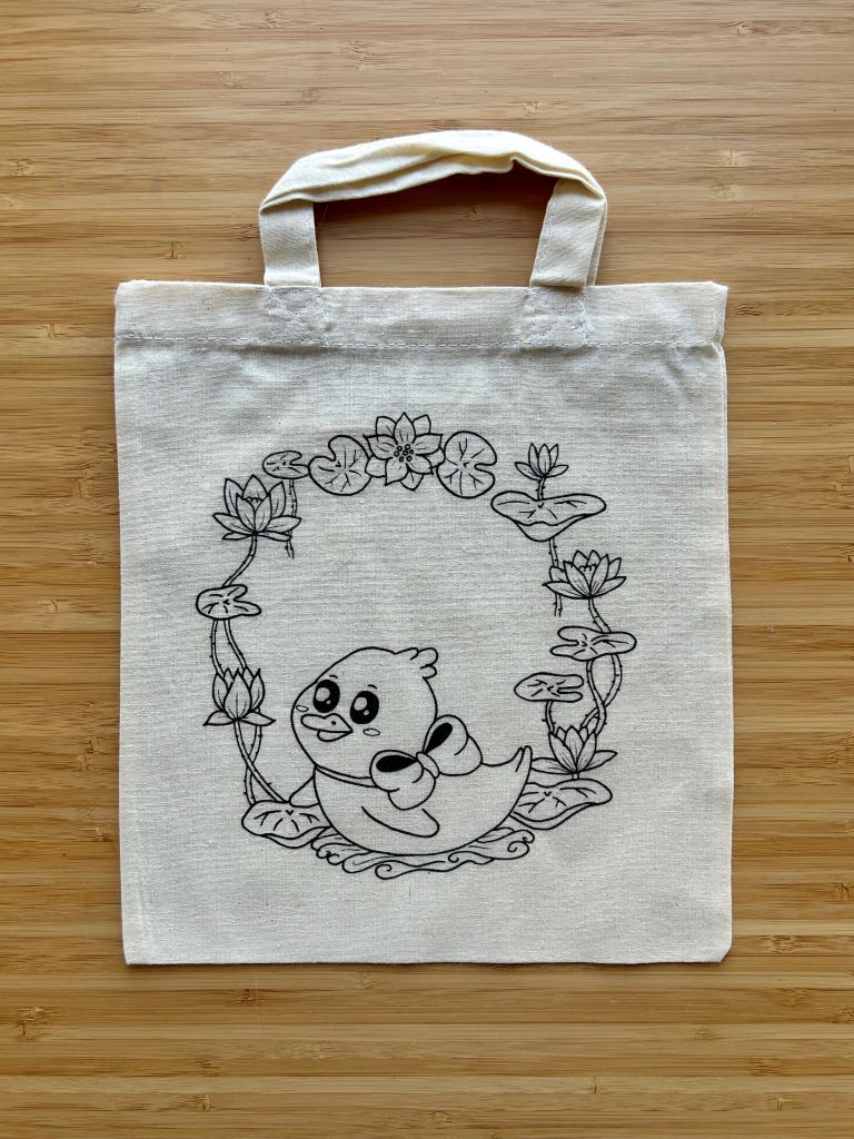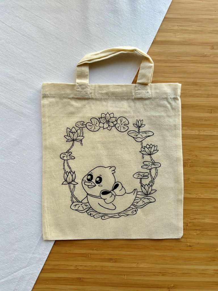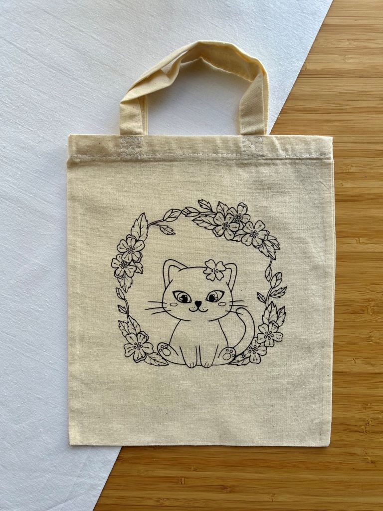 Obrázek si můžete vybarvit jako omalovánku. Můžete si také zakoupit kreativní sadu včetně fix na textil.