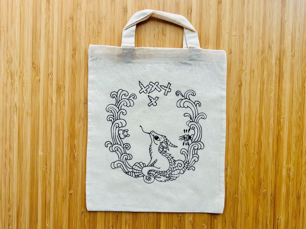 Malá taštička ozdobená reprodukcí mé perokresby roztomilého obrázku